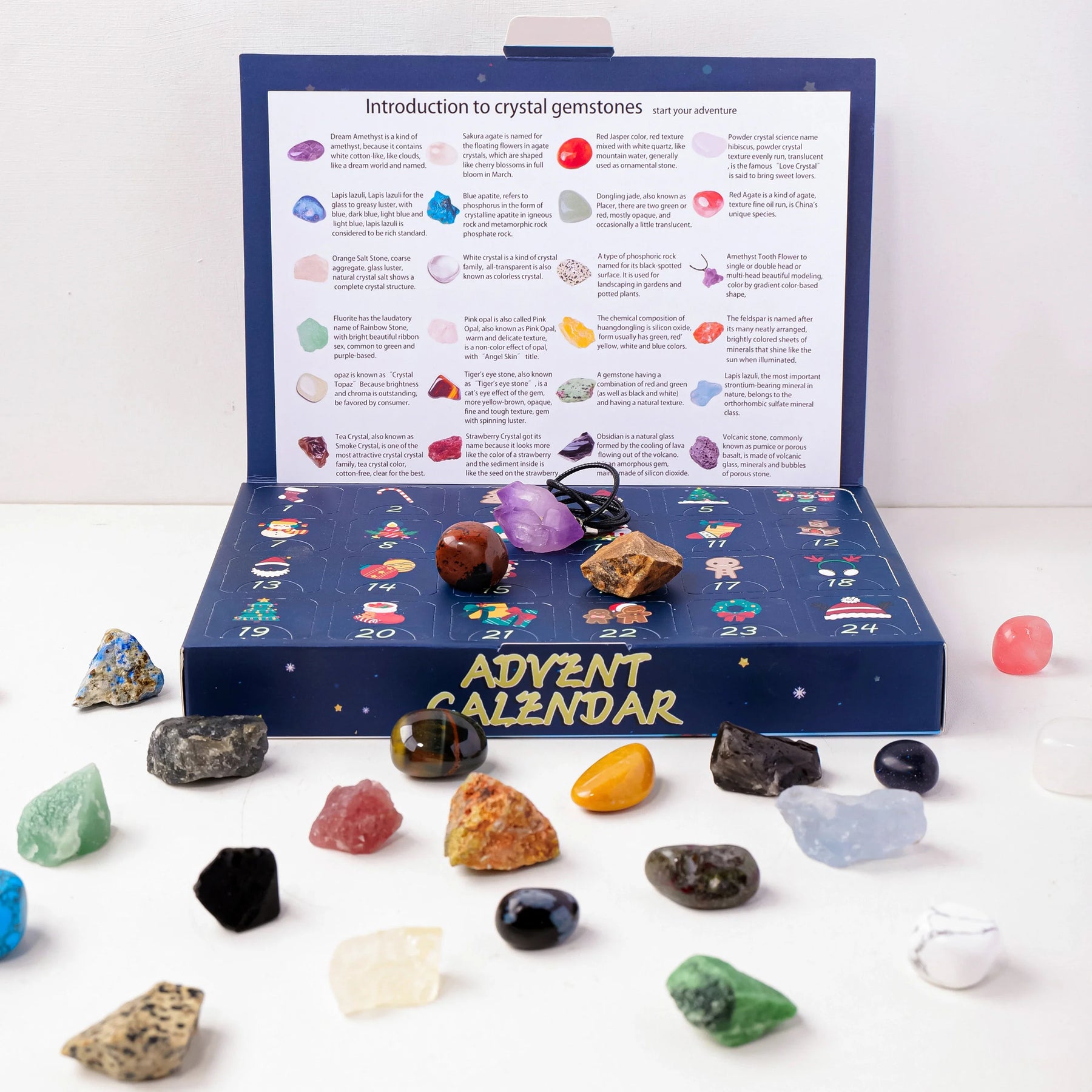 • 24 unique crystals and pebbles: Enjoy a daily surprise with natural gemstones.